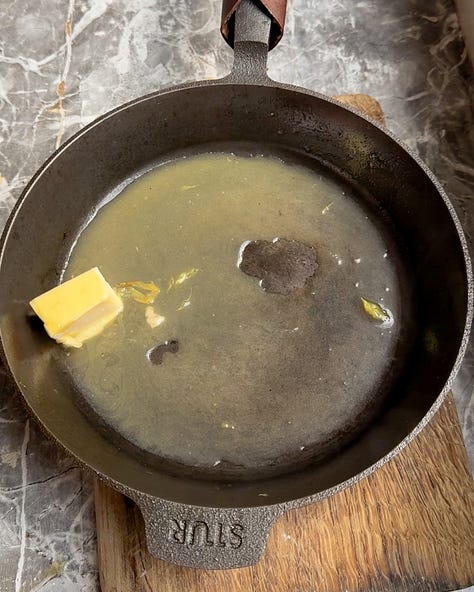 Da das Gericht an sich recht gesund ist, dachte ich mir, warum nicht noch eine ordentliche Portion Butter ins Spiel bringen? Eine Wein-Buttersauce (Beurre Blanc) macht so ziemlich alles besser und rundet das Gericht perfekt ab. Ich verstehe aber, wenn es euch zu fettig ist – dann könnt ihr die Butter weglassen und einfach die Flüssigkeit aus der Pfanne direkt über den Chicorée geben. Das schmeckt auch super!